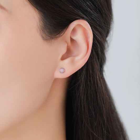 Sterling Silver Genuine Pink Opal Tiny Stud Earrings, Natural Rose Cut Pink Opal Stud, Natural Semi-Precious Gemstones, 4mm Bezel