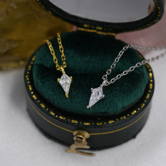 Extra Tiny Rhombus Kite CZ Necklace in Sterling Silver, Silver or Gold, Tiny Diamond Necklace, Tiny Dagger Necklace