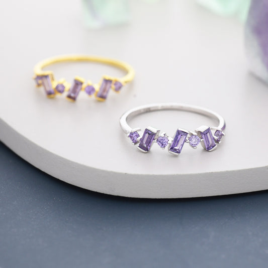 Lilac Purple Amethyst Baguette CZ Cluster Ring in Sterling Silver, Silver or Gold, Baguette Ring, Cluster Ring, Organic Shape, US 5 - 8