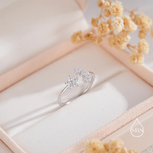 Forget-me-not Flower Bouquet CZ Flower Ring in Sterling Silver, Open Ring, Adjustable Size, Four Crystal Flower Ring, Tiny CZ Ring
