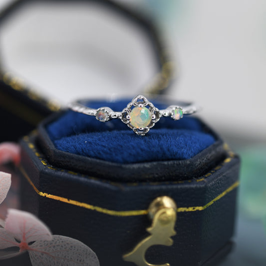 Natural Opal Ring in Sterling Silver, Vintage Inspired Design, Natural Semi-Precious Opal Ring, US 5-8