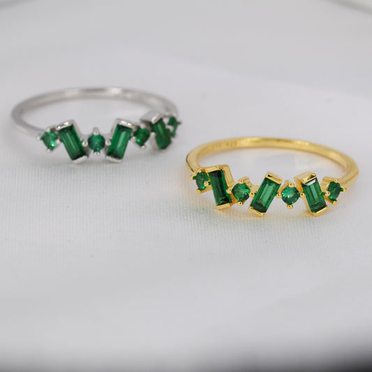 Emerald Green Baguette CZ Cluster Ring in Sterling Silver, Silver or Gold, Organic Shape CZ Ring, US 5 - 8