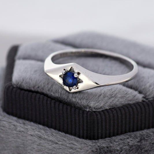 Kite Signet Sapphire Ring in Sterling Silver, Silver or Gold, Starburst Sapphire Blue CZ Ring, Rhombus Ring, US 5 - 8