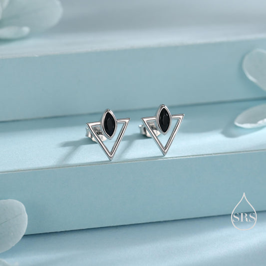 Sterling Silver Triangle and Black Marquise CZ Arrow Arrowhead Stud Earrings, Silver, Gold, Open Triangle Earrings
