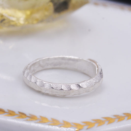 Sterling Silver Hammered Ring Band, Minimalist Organic Shape Ring , Adjustable Size