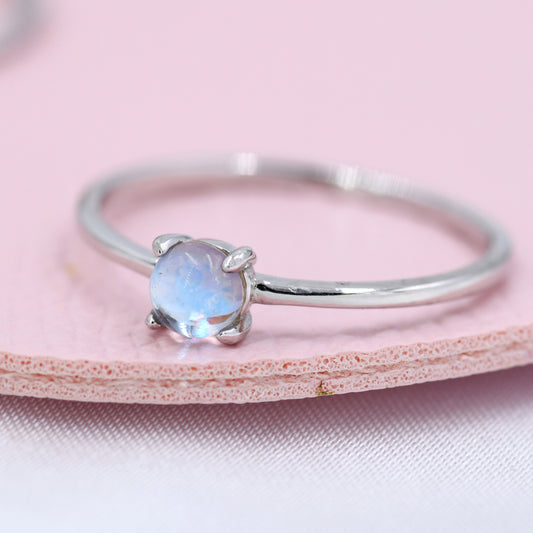 Simulated Moonstone Ring in Sterling Silver, Mermaid Crystal Ring, Minimalist Aurora Ring, US 5 - 8