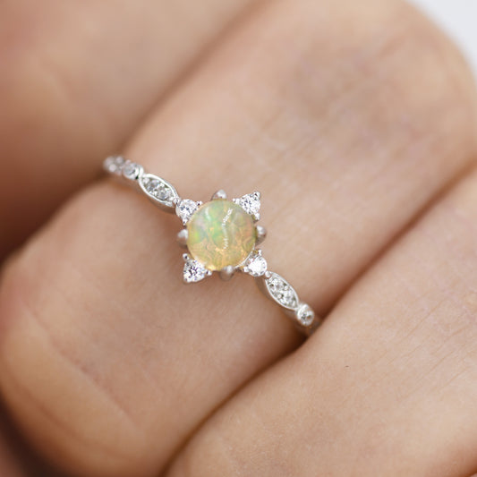 Genuine Opal Ring in Sterling Silver, US 5 - 8, Vintage Inspired Design, Natural Opal Stone Ring, Ethiopian Opal