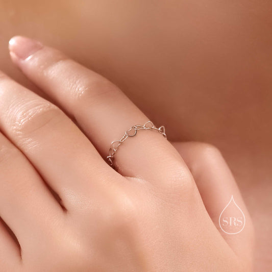 Sterling Silver Heart Link Chain Ring, US Size 4 5 6 7 8 Chain Ring, Sparkling Silver Ring, Soft chain Ring in Sterling Silver