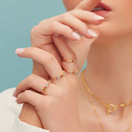 Multicolour CZ Infinity Ring in Sterling Silver, Silver or Gold, Dotted Bezel CZ Ring, Simulated Tourmaline US 5 - 8