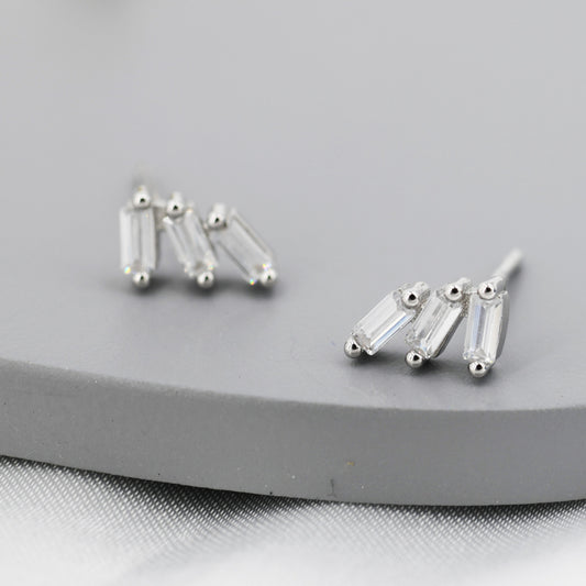 Baguette CZ Trio Stud Earrings in Sterling Silver, Silver or Gold, Irregular Shaped CZ Cluster Earrings, Stacking Earrings