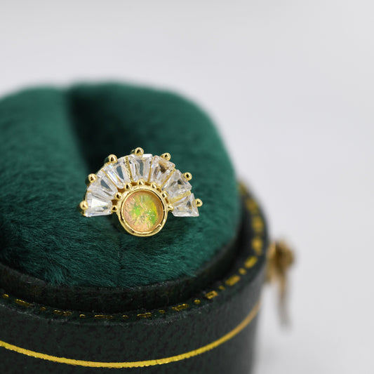 Art Deco Style Opal Fan Stud Earrings in Sterling Silver, Silver or Gold, Crown Opal Earrings, Tiny Opal Earrings