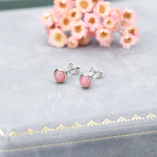 Sterling Silver Genuine Pink Opal Tiny Stud Earrings, Genuine Pink Opal Stud, Natural Semi-Precious Gemstones, 4mm Bezel Earrings