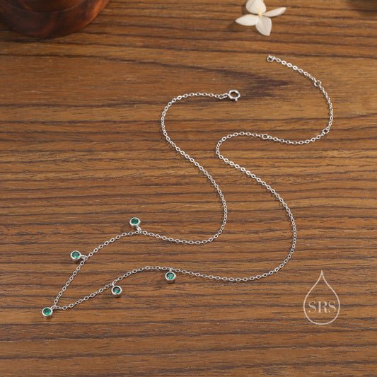 Emerald Green CZ Dangle Necklace in Sterling Silver, Silver or Gold, Satellite Crystal Necklace, Solid Silver Motif Necklace