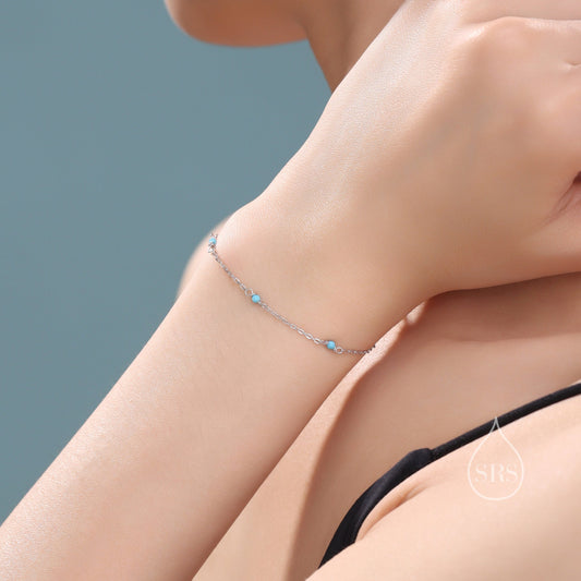 2mm Turquoise Beaded Satellite Chain Bracelet in Sterling Silver, Silver or Gold, Minimalist Geometric Style