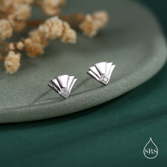Art Deco Inspired Small Sun Ray Stud Earrings in Sterling Silver, Silver or Gold or Rose Gold, Tiny and Delicate Art Deco Style Earrings