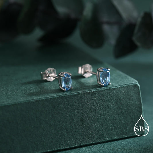Genuine Topaz Crystal Stud Earrings in Sterling Silver, Natural Topaz Oval Crystal Earrings, March Birthstone