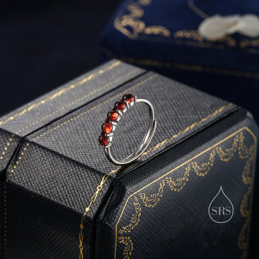 Natural Garnet Half Infinity Ring in Sterling Silver, Adjustable Size, Red Garnet Ring, January Birthstone Ring