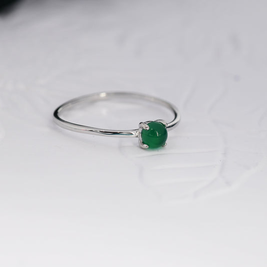 Genuine Green Onyx Ring in Sterling Silver, US 5 - 8, Natural Onyx Ring, Tiny Jade Ring?6mm Onyx Stone