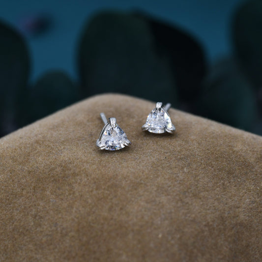 Genuine White Topaz Stud Earrings in Sterling Silver, Silver or Gold, Trillion Cut Natural White Topaz Earrings, Double Pronged