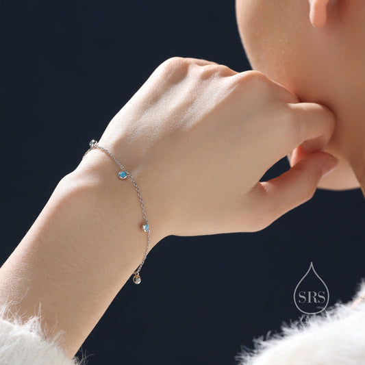 Delicate Turquoise CZ Charm Bracelet in Sterling Silver, Silver or Gold, Sterling Silver Tiny Blue Turquoise Bracelet