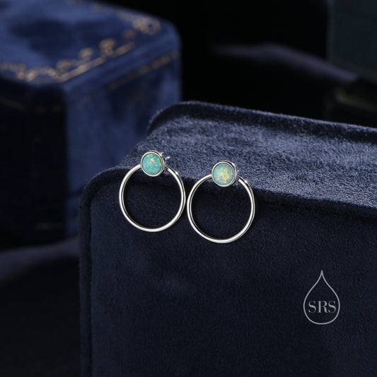 Double Circle Aqua Green Opal Ear Jacket in Sterling Silver, Two Way Detachable Circle Earrings, Front and Back Lab Opal Earring