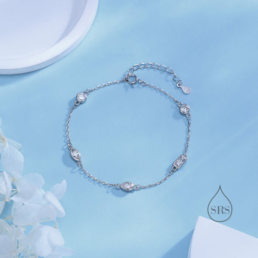 CZ Cluster Bracelet in Sterling Silver, Silver or Gold, Silver Green CZ Pear Cut Bracelet, Green CZ Cluster Bracelet