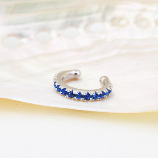 Sapphire Blue CZ Ear Cuff in Sterling Silver, Silver or Gold, Simple Piercing Free Earrings, Minimalist Ear Cuff, Blue CZ Ear Cuff