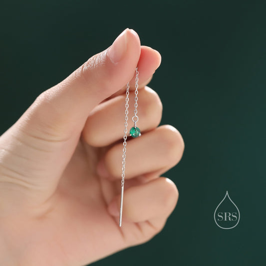 4mm Emerald Green CZ Threader Earrings in Sterling Silver, Silver or Gold or Rose Gold, Tiny Dot Crystal Ear Threaders, Prong Set CZ Earring