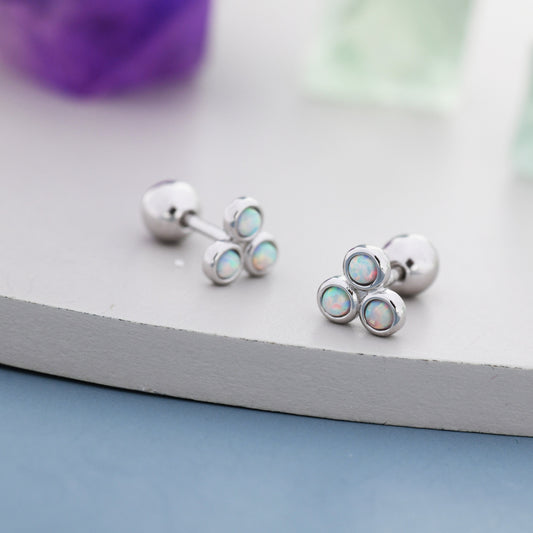 White Opal Trio Screw back Earrings in Sterling Silver, Silver or Gold, Opal Trinity Earrings, Screwback Barbell