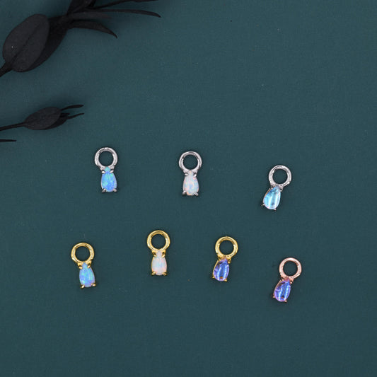 White Opal/Blue Opal/Moonstone Charms for Huggie Hoops, Sterling Silver Droplet Charms, Prong Set, Detachable, Silver, Gold, or Rose Gold