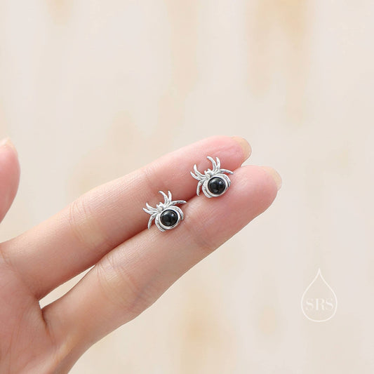 Spider Stud Earrings in Sterling Silver, Silver or Gold, Animal Earrings, Nature Inspired, Insect Earrings, Moonstone, Opal or Black Onyx