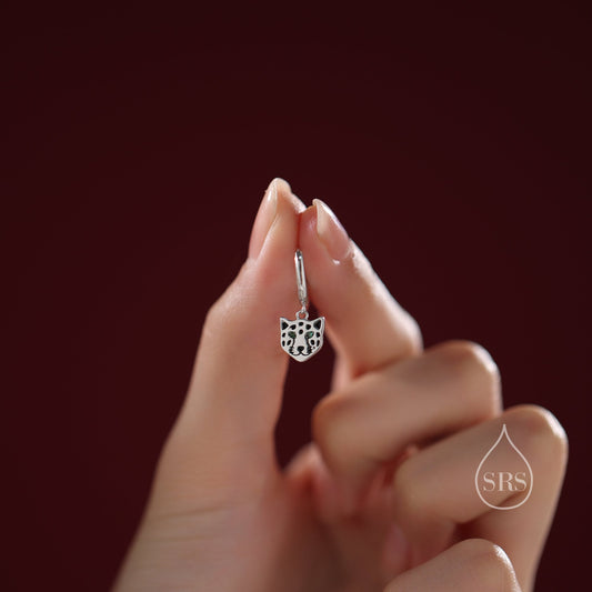 Leopard Face Huggie Hoop Earrings in Sterling Silver, Leopard Earrings, Leopard Dangle Hoops, Fish Hoops, Animal Earring