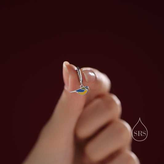 Super Cute Blue Tit Bird Huggie Hoop Earrings in Sterling Silver - Cute Bird Hoop Earrings, Blue Tit Earrings
