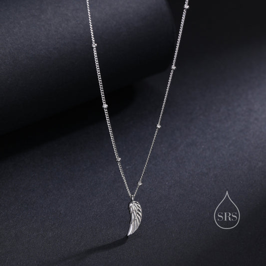 Tiny and Delicate Angel Wing Pendant Necklace in Sterling Silver with a Satellite Chain, Bird Necklace, Silver or Gold or Rose Gold