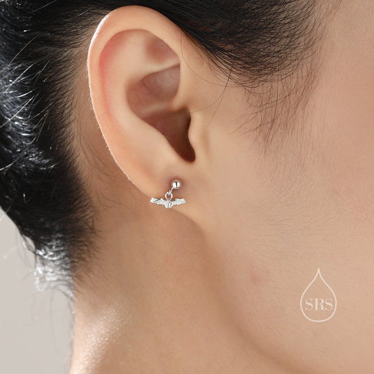 Extra Tiny Bat Drop Stud Earrings in Sterling Silver, Silver or Gold, Stacking Earrings, Animal Earrings