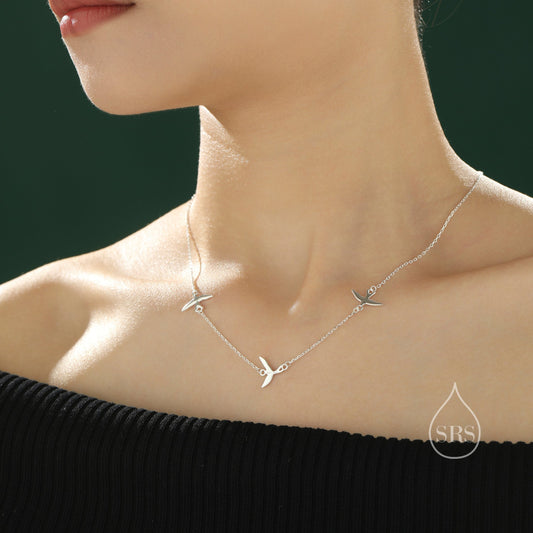 Flying Bird Satellite Necklace in Sterling Silver, Swallow Bird Necklace, Silver or Gold - Cute Quirky and Fun Jewellery