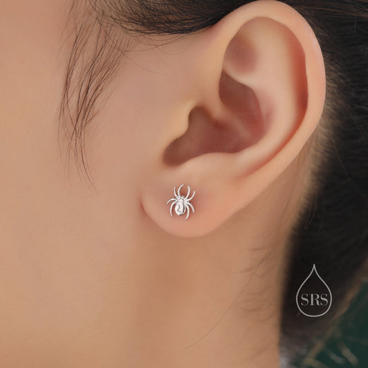 Black Widow Spider Stud Earrings in Sterling Silver, Silver or Gold or Rose Gold, Animal Earrings, Nature Inspired, Insect Earrings