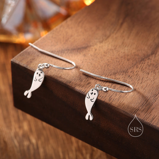 Cute Baby Seal Drop Dangling Earrings in Sterling Silver, Silver or Gold or Rose Gold, Seal Earrings, Ocean Animal Hook Earrings, Scottish