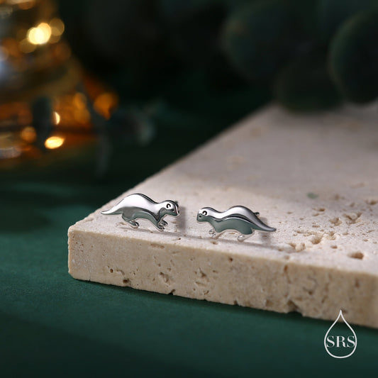 Very Tiny Otter Stud Earrings in Sterling Silver - Silver, Gold or Rose Gold Finish - Cute Animal Earrings - Fun, Whimsical Earrings
