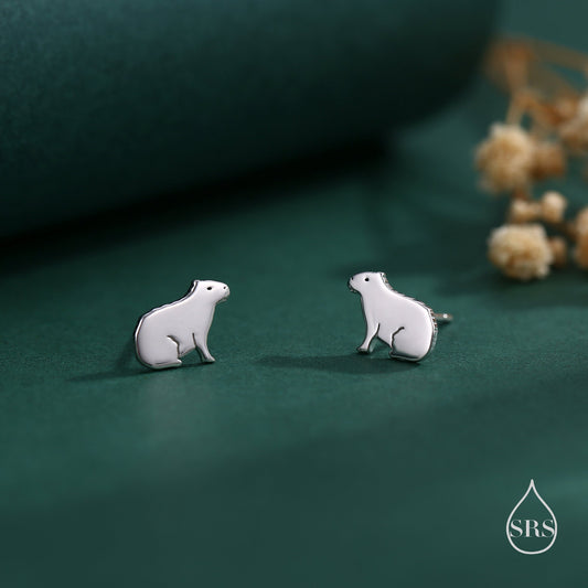 Sitting Capybara Stud Earrings in Sterling Silver - Silver, Gold or Rose Gold - Cute Animal Earrings - Pantanal Animal - Fun, Whimsical