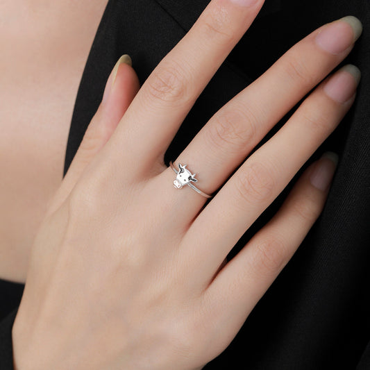 Dairy Cow Ring in Sterling Silver, Adjustable Size, Cute Cow Ring, Sterling Silver Bull Animal ring.