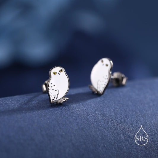 Sterling Silver Snowy Owl Bird Stud Earrings, Black Rhodium Coated Owl Bird Earrings, Nature Inspired Animal Earrings, Owl Stud