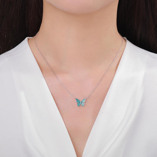 Blue Enamel Butterfly Pendant Necklace in Sterling Silver, Silver Butterfly Necklace, Animal Jewellery by Silver Rain Silver