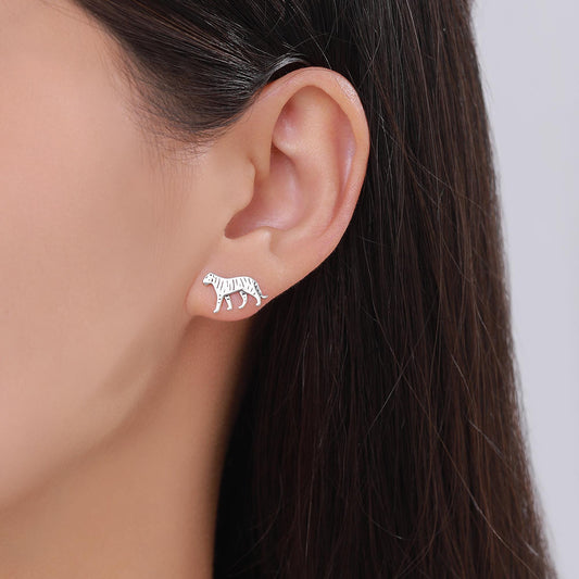Tiger Stud Earrings in Sterling Silver, Silver Gold or Rose Gold, Nature Inspired Animal Earrings