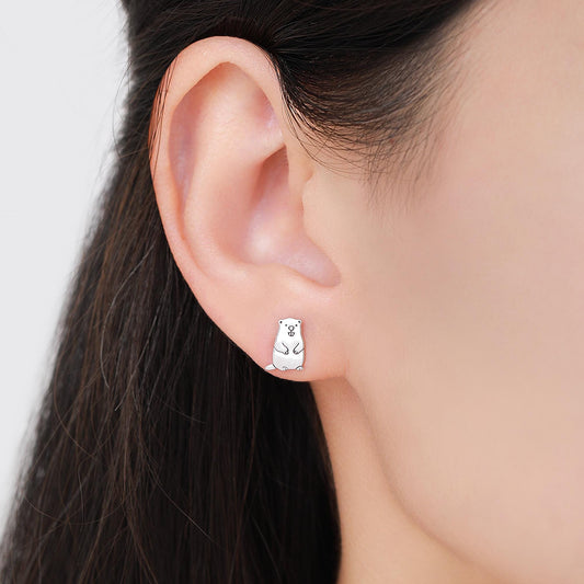 Groundhog Sterling Silver Stud Earrings, Silver or Gold or Rose Gold Finish, Small Beaver Dog Earrings, Nature Inspired Animal Earrings