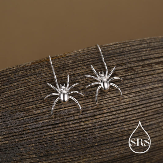 Sterling Silver Spider Drop Earrings, Also in Gold and Rose Gold Finish, Quirky and Edgy Animal Earrings, Nature Inspired
