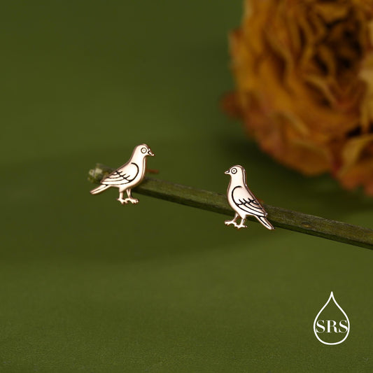 Cute Pigeon Bird Stud Earrings in Sterling Silver