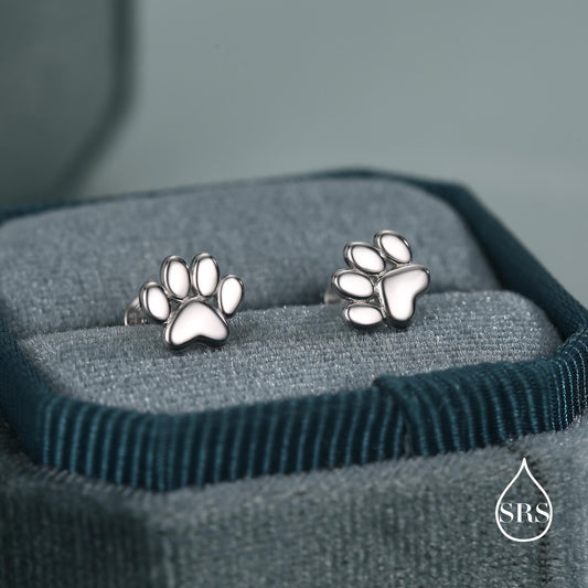 Sterling Silver Paw Print Flat-Back Studs for Animal Lovers, 16G Flat Back Earrings