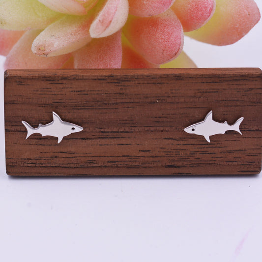 Shark Fish Stud Earrings in Sterling Silver, Cute Fun Quirky, Jewellery Gift for Her, Animal Lover, Nature Inspired, Nautical Fish L16
