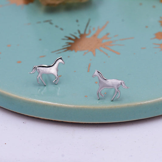 Little Galloping Horse Stud Earrings in Sterling Silver, Cute Fun Animal, Jewelry Gift for Her, Animal Lover, Nature Inspired